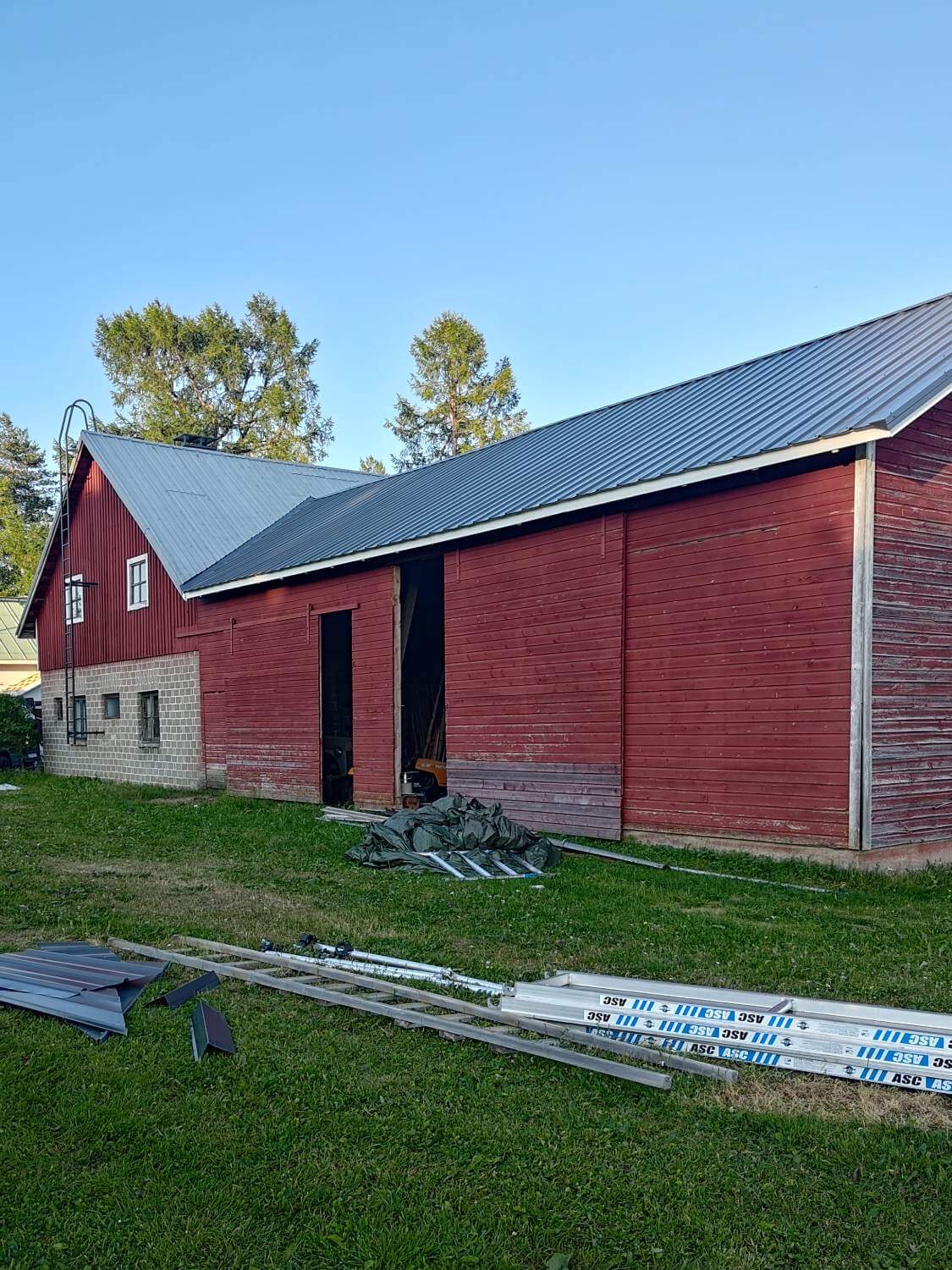 Autotallin seiniin tehtiin tuulensuojalevytys ja ulkoverhous. Kattoon tehtiin uusi runko ja asennettiin tiivissaumakate.