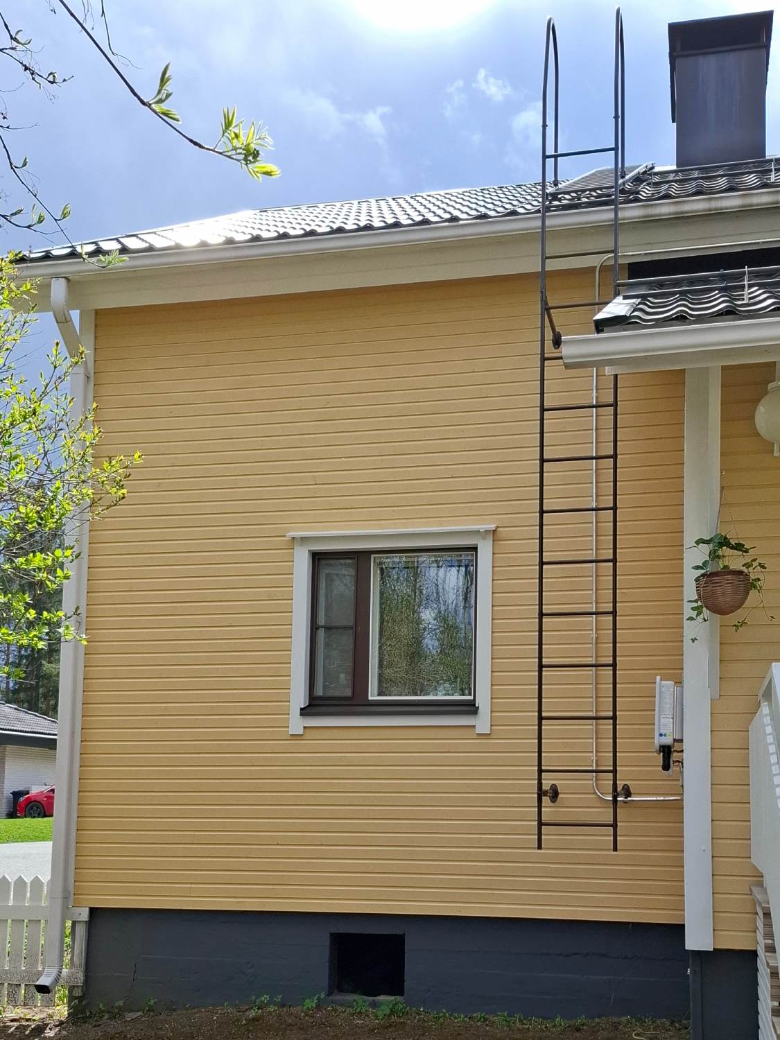 Navetan huopakatteen tilalle vaihdettiin peltikate ja talon kuistin peltikate uusittiin. Savupiipun yläosa korjattiin ja piippu pellitettiin.