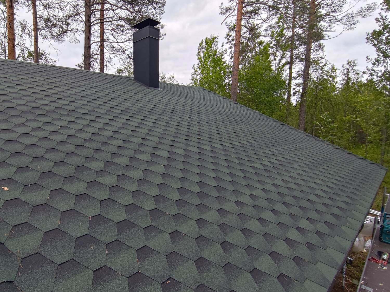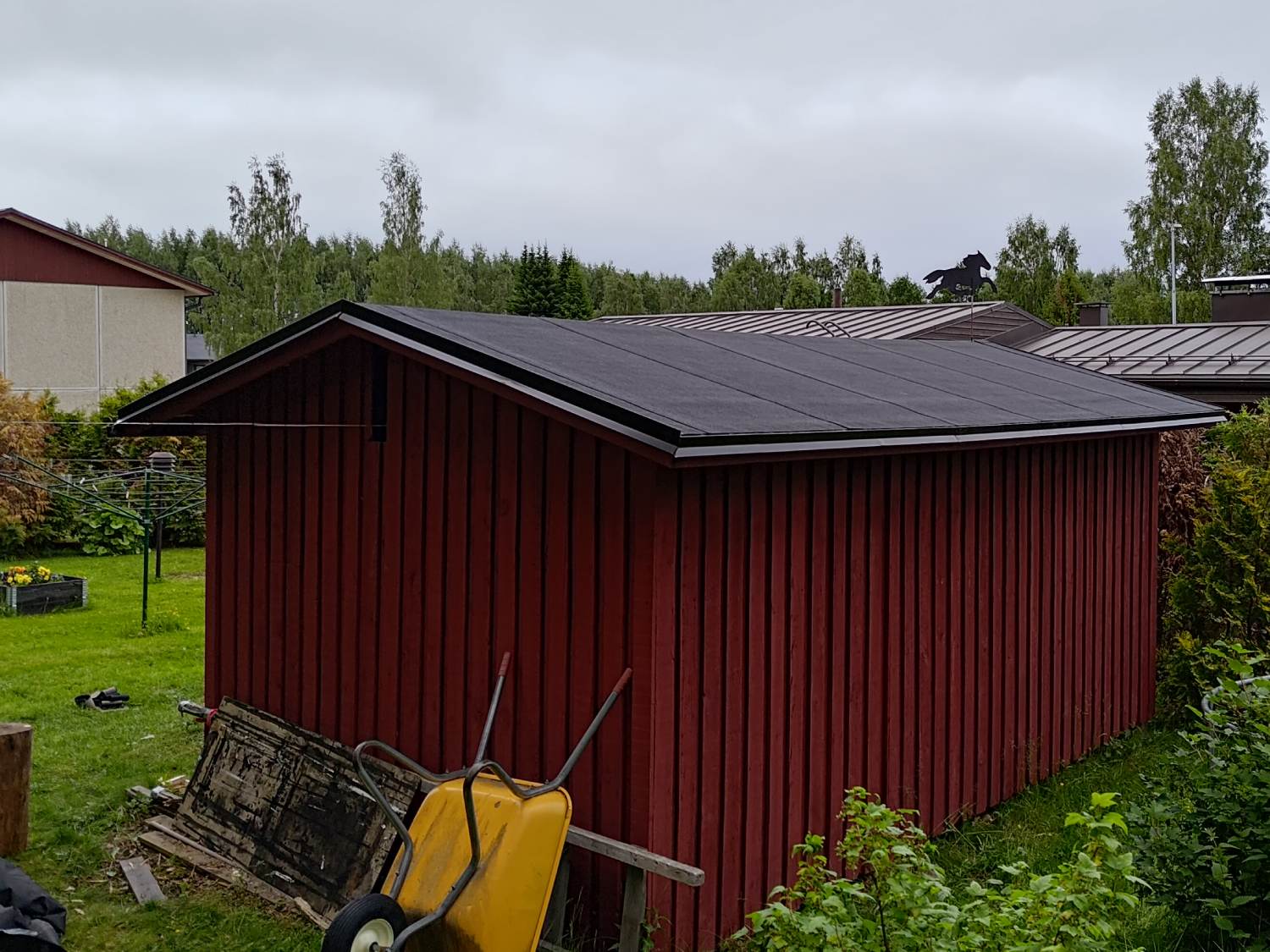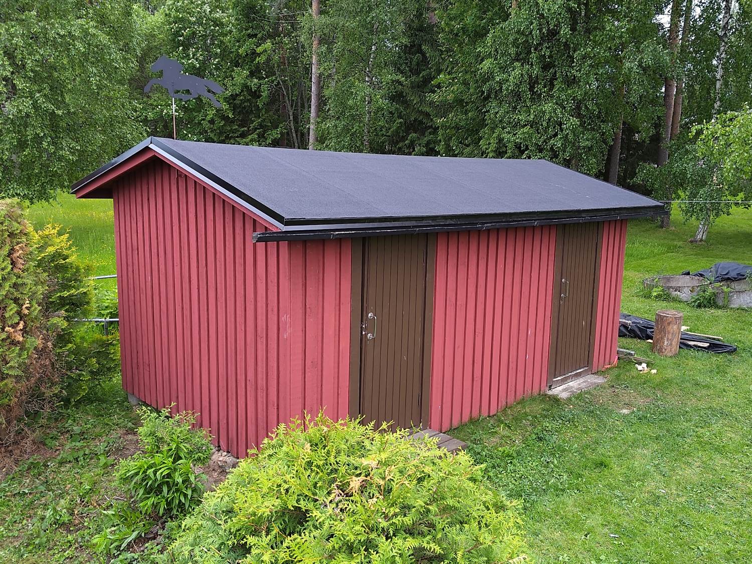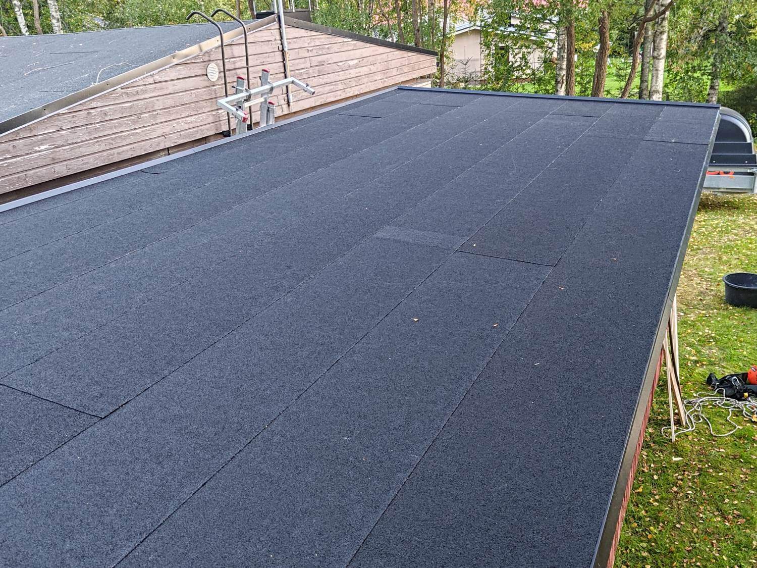 Pihavaraston kattohuopa reunapellityksineen uusittiin.
