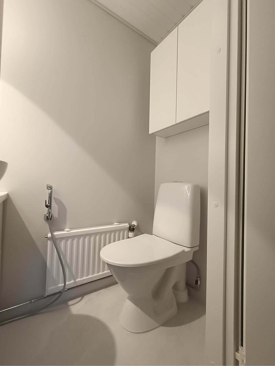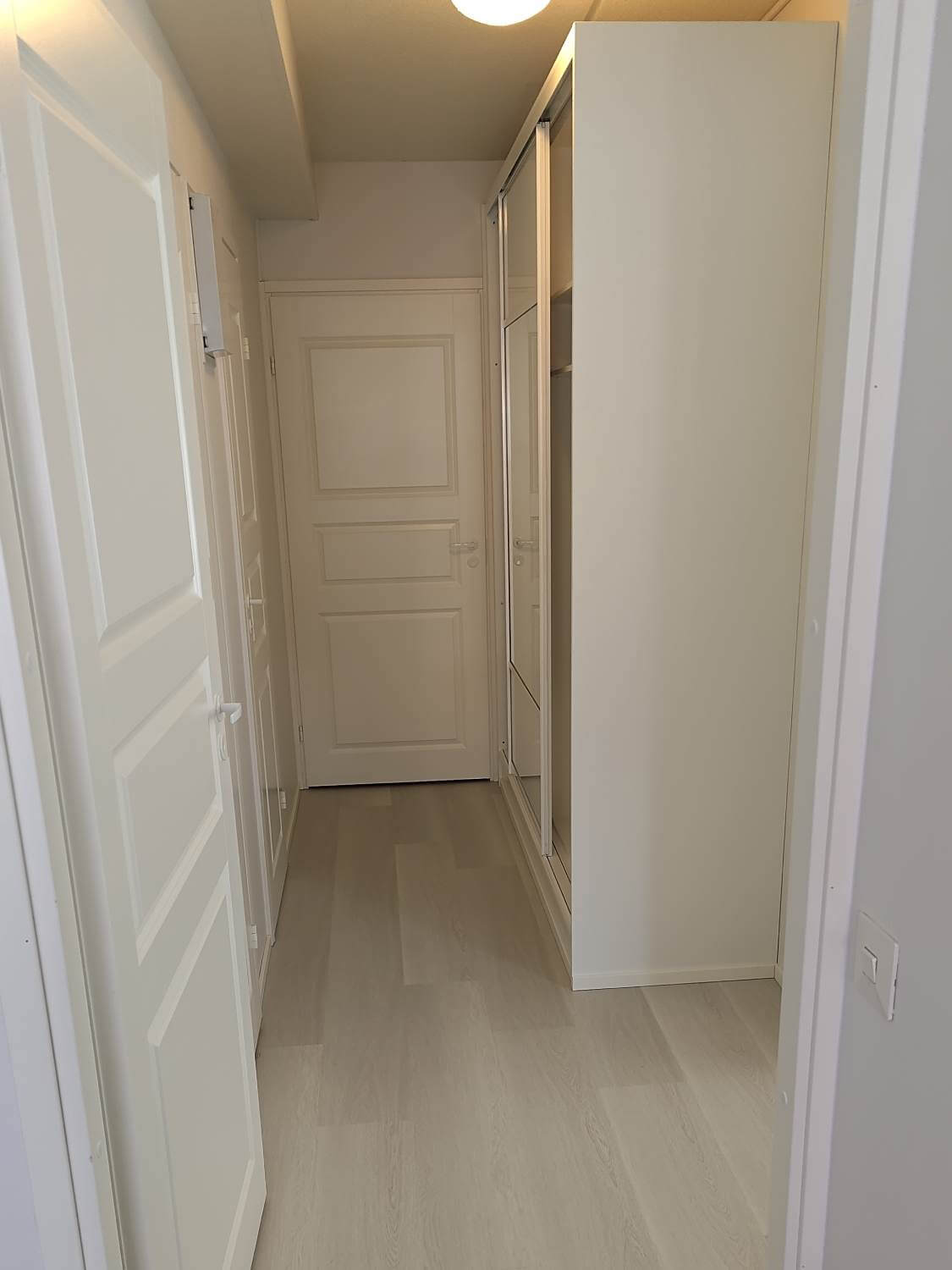 Huoneiston wc uusittiin kokonaisuudessaan. Asunnon lattiaan asennettiin vinyylilankku, seiniä maalattiin, väliovet uusittiin sekä eteiseen asennettiin uudet kaapit.